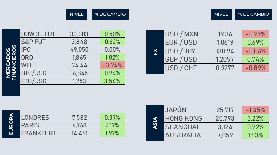 En Estados Unidos, tuvimos la demanda de hipotecas a la baja muy pronunciado y las tasas continúa al alza. Esperamos el ISM manufacturero, reporte de JOLTs de empleo y las minutas de la Fed.
