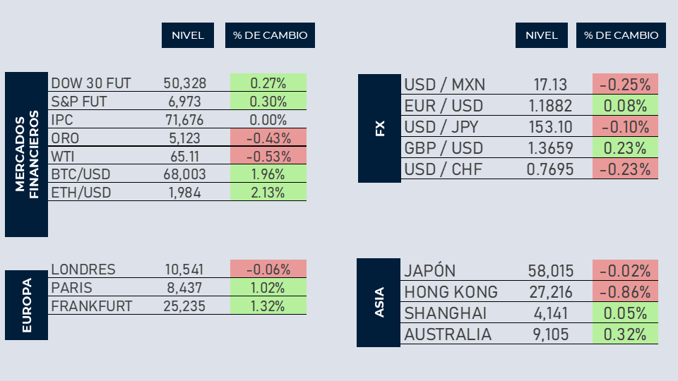 Early Bird 12 de febrero - Inversionistas esperan dato de inflación, azúcar en mínimos, reforma laboral de 40 horas y más