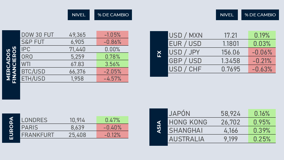 En Estados Unidos, la inflación al productor durante enero sorprendió ligeramente al alza, al ubicarse en 0.5%. Más adelante, se esperan datos relacionados con el sector construcción.